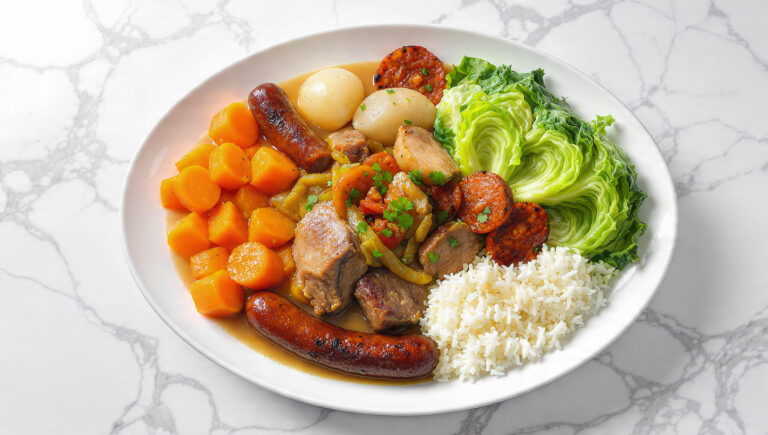 Cozido à Portuguesa is a traditional Portuguese stew that brings together a variety of meats (such as pork, beef, and chicken), sausages, and vegetables (including cabbage, carrots, and potatoes). Slowly simmered to perfection, this hearty dish is a showcase of Portuguese comfort food, often enjoyed during family gatherings and special occasions.