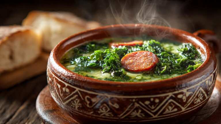 Caldo Verde, or green soup, is a traditional soup made with potatoes, kale, and chouriço (a type of Portuguese sausage). Originating from the Minho region in northern Portugal, this simple yet hearty soup is a staple at family gatherings and celebrations. It’s particularly popular during the winter months, providing warmth and comfort with every spoonful.