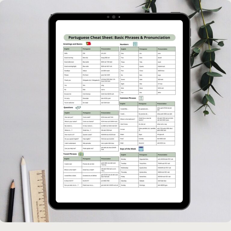 Portuguese Cheat Sheet — Free Printable (English + Phonetics)